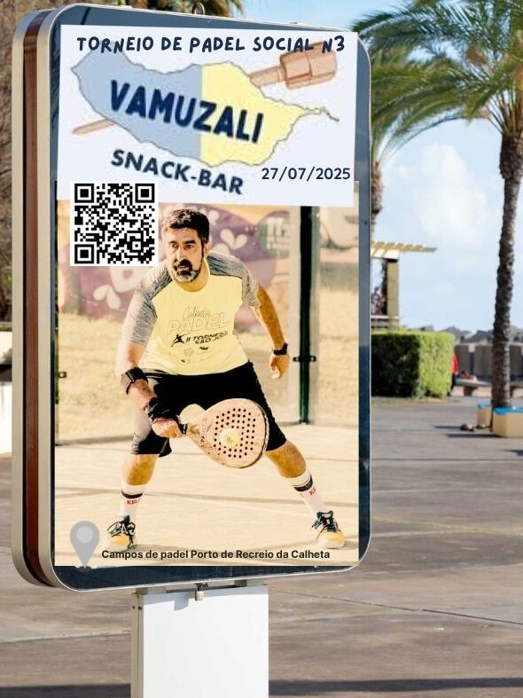 O Torneio VAMUZALI será disputado nos campos de padel do Porto de Recreio da Calheta no dia 27 de julho de 2025, entre as 10h e as 20h
