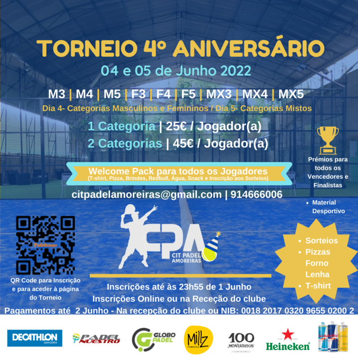 1. O CIT Padel Amoreiras vai realizar o Torneio de 4º Aniversário CIT Padel Amoreiras, nos dias 04 e 05 de Junho.